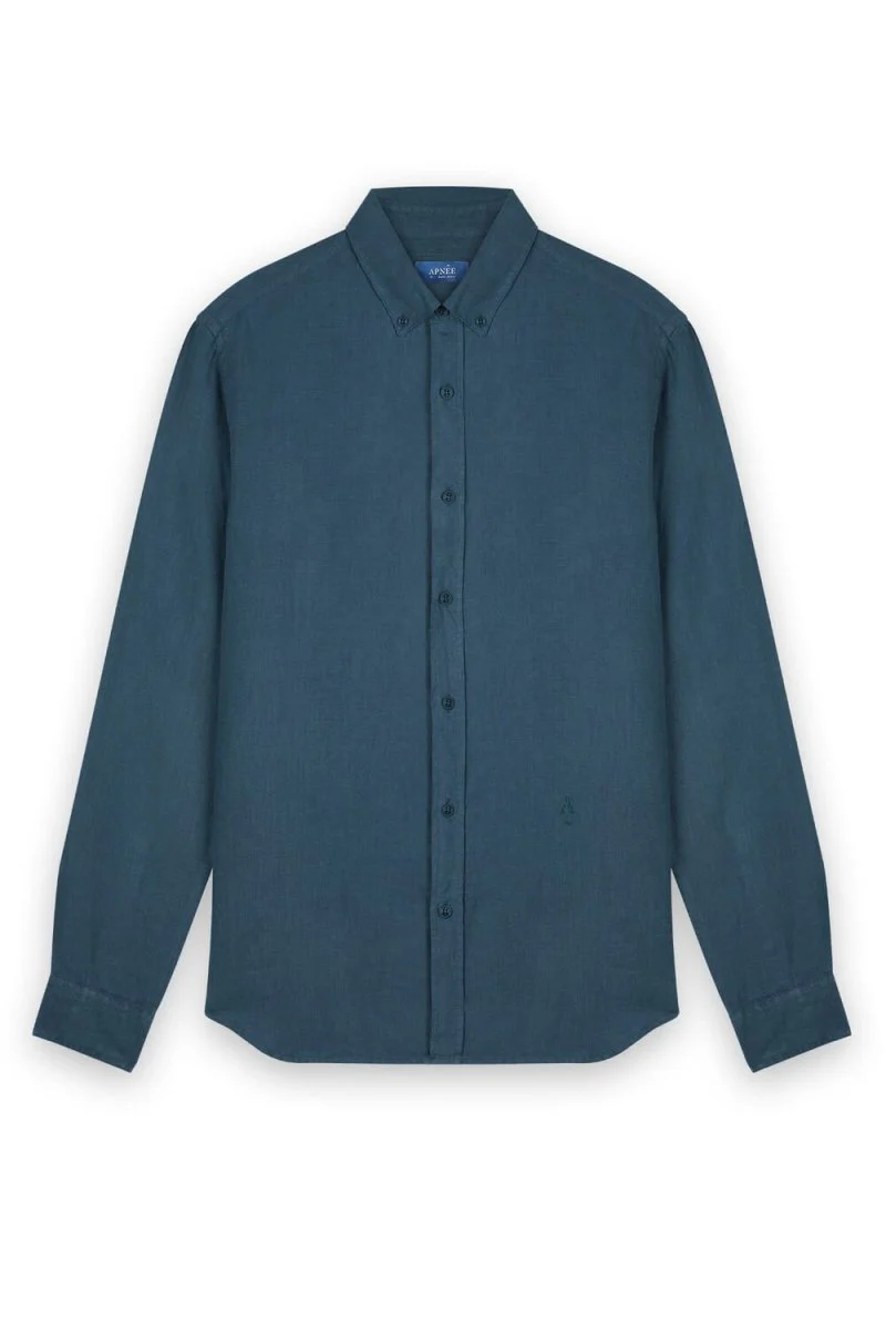 Chemise en lin en bleue pétrole