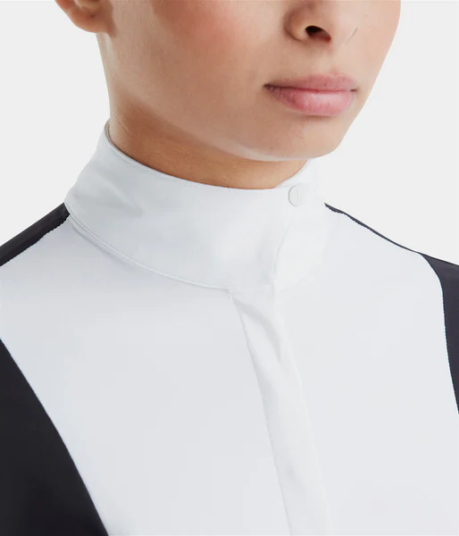 Nous avons travaillé sur un nouveau design pour amener plus de confort. Avec ses découpes ergonomiques, la chemise s’adapte parfaitement aux mouvements du corps. La forme du poignet et du col a été spécialement étudiée pour libérer les gestes du cavalier en concours. Conçue dans une matière 4-way stretch et dotée de notre technologie UV-Block, la chemise offre confort et protection. Très respirante, sa zone micro-perforée positionnée dans le dos évacue efficacement la chaleur pendant les efforts intenses. Son col rehaussé est adapté pour les disciplines hunter equitation.