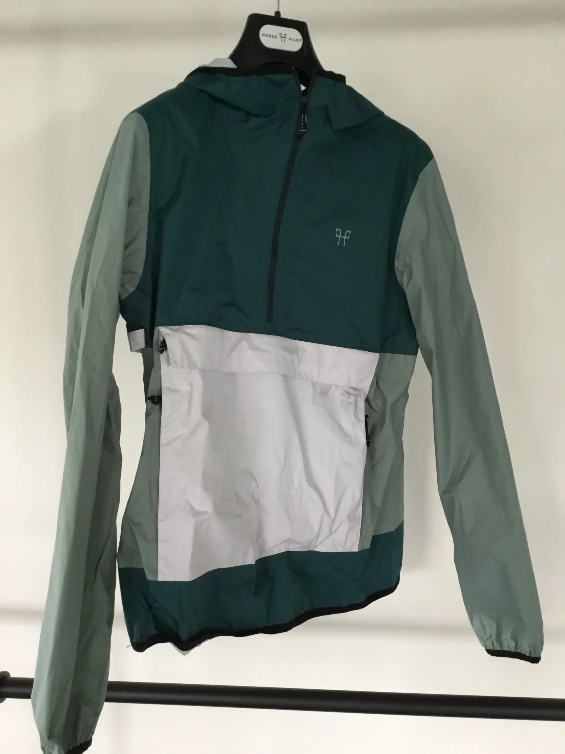 La veste Raintech protège le cavalier de la pluie et du vent. Compressible, elle se roule entièrement dans sa poche pour se ranger facilement dans les bagages du cavalier.