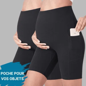 Short de maternité taille haute slim-fit style cycliste : soutien optimal et liberté de mouvement