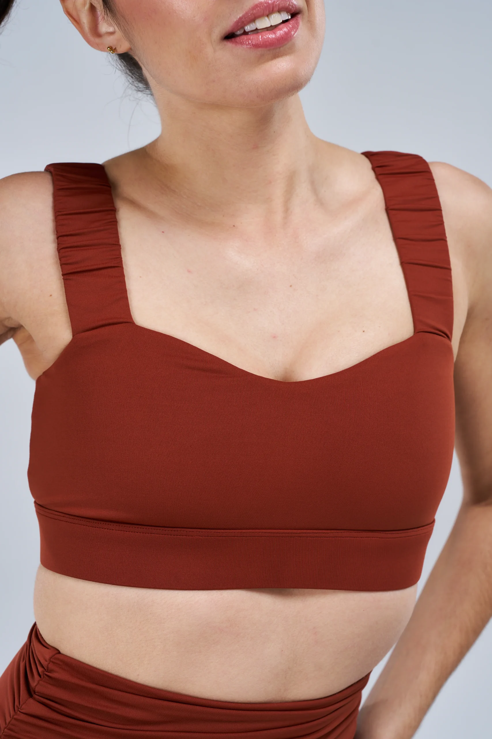 Comme son nom l’indique, la brassière Wave Ruffle structure joliment la silhouette avec son décolleté en forme de vague, ses deux larges bretelles au fini drapé et son élastique sous la poitrine qui apporte maintien et confort.