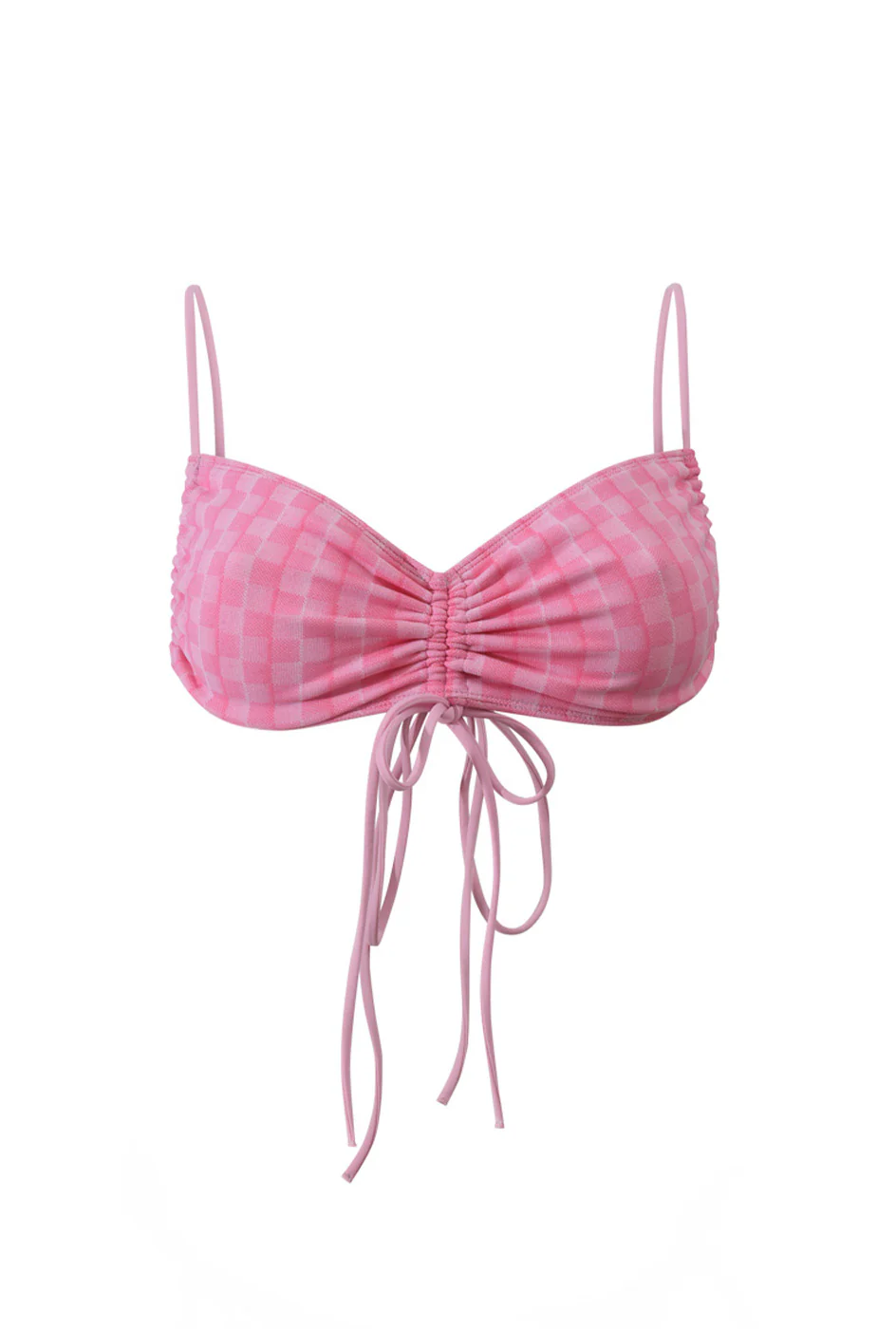 Ce haut de maillot de bain propose une forme bandeau avec des liens coulissants.