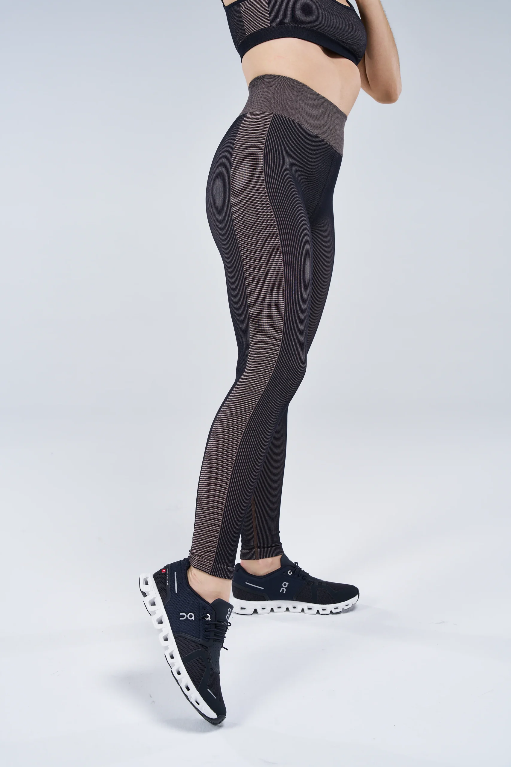 Si vous êtes des adeptes de la matière seamless, le legging Midi sera votre must ! Son fini côtelé en deux couleurs, noir et mocha apportent douceur et une touche d’originalité. Sa ceinture taille mi-haute sculpte joliment la taille.