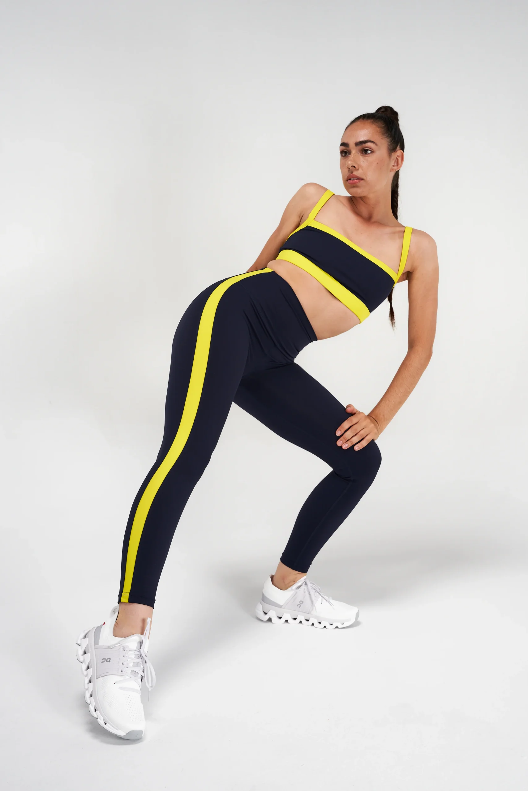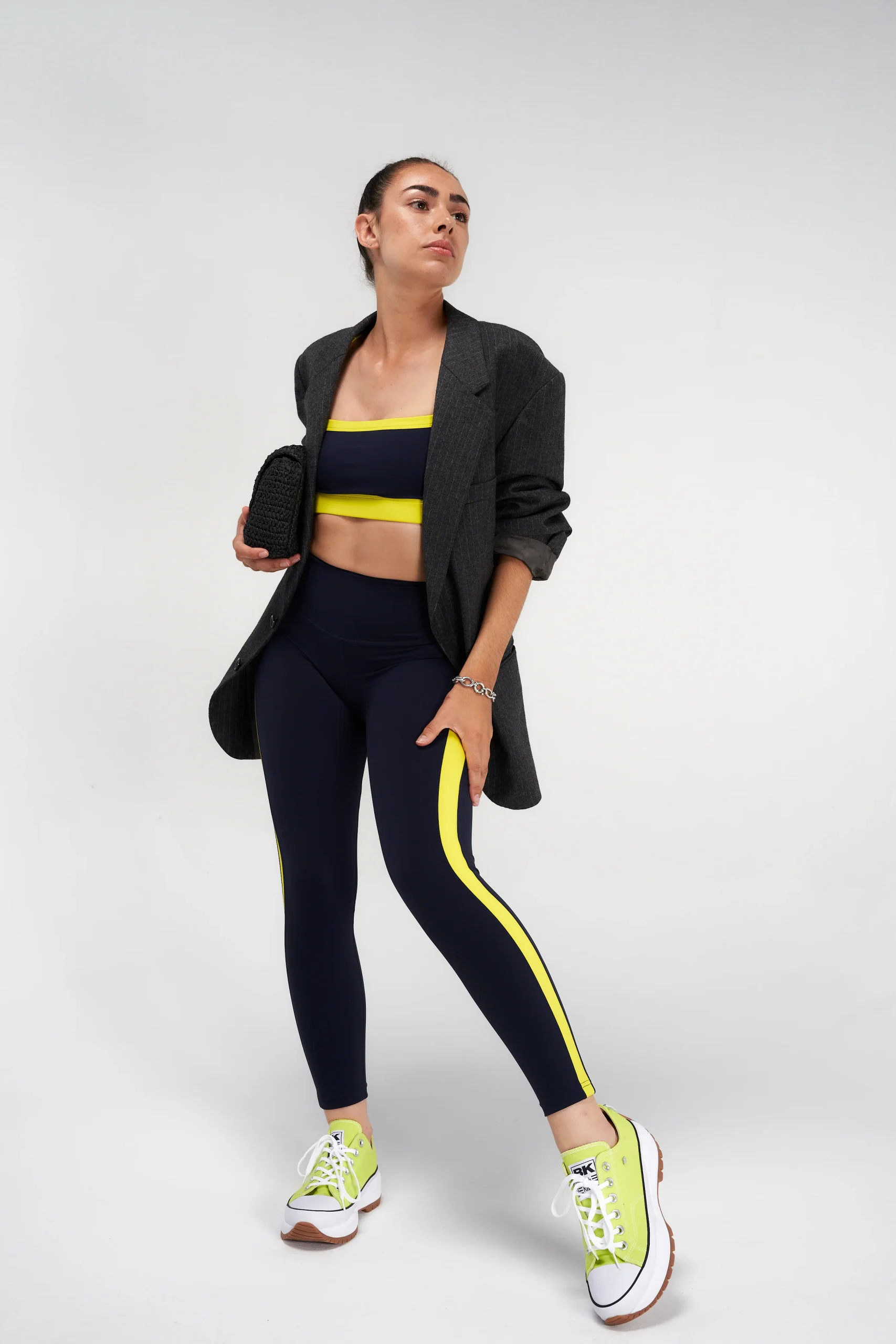 Avec son fini mat effet velours, combinez le avec la brassière Monah pour un full look retro. Rajoutez lui une chemise fluide courte et une veste de tailleur pour garder le style après sa séance de sport.