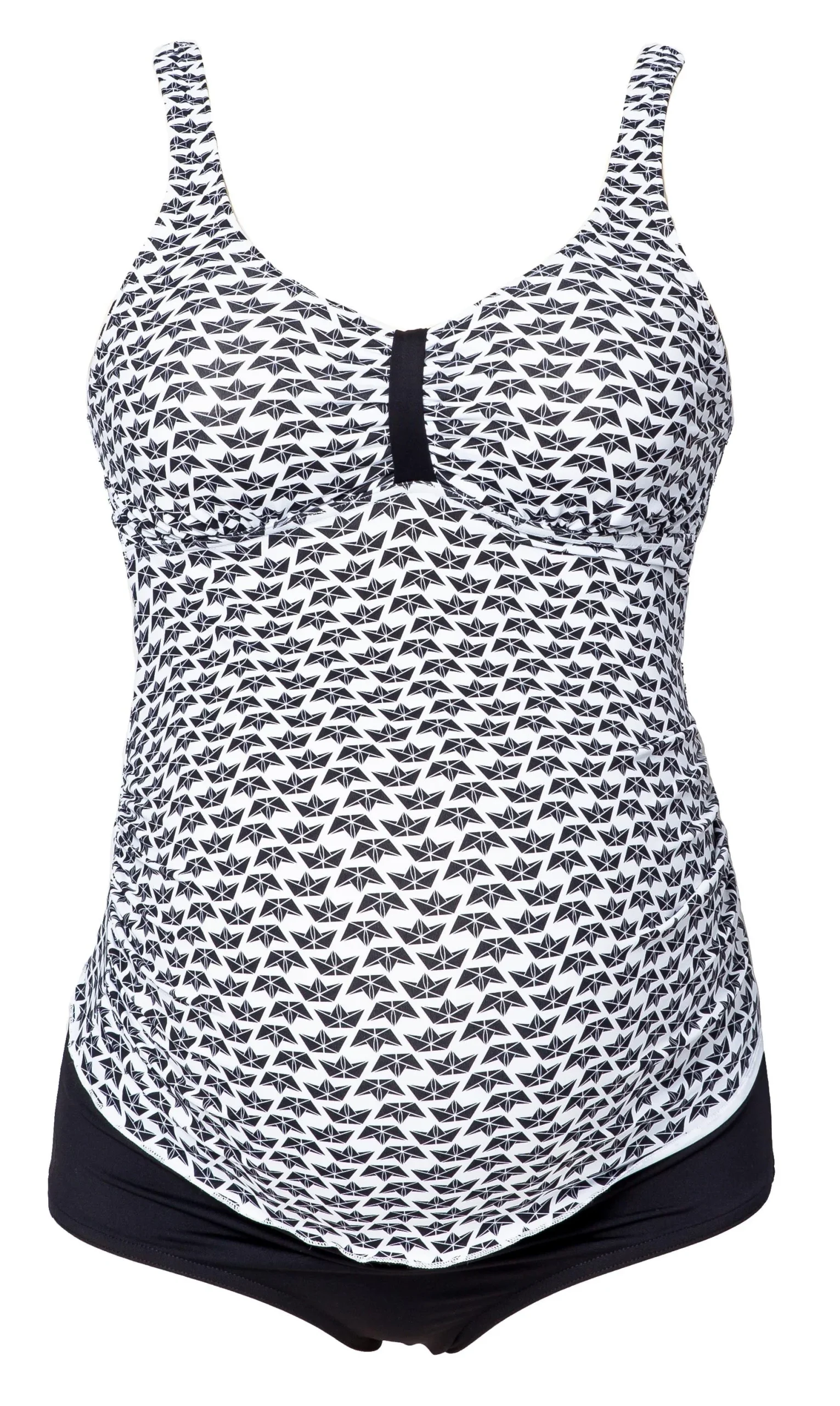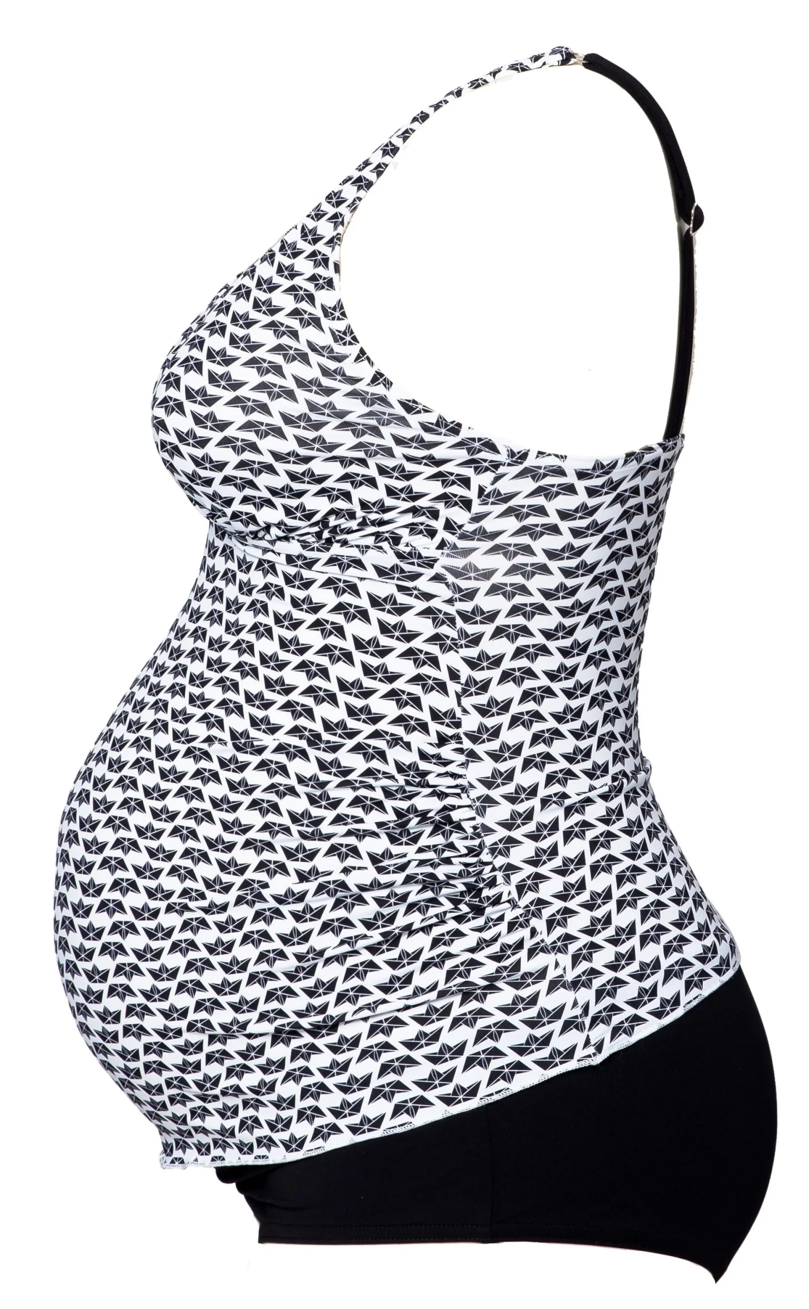 Le tankini de grossesse anti-UV écoresponsable Mahé s’adresse aux femmes enceintes à la recherche d’un tankini de grossesse pratique, confortable et esthétique pour les accompagner tout au long de leur grossesse. Doté de coques amovibles et de bretelles réglables pour assurer un bon maintien, il s’accompagne d’un shorty emboitant très agréable à porter. Ici dans notre imprimé exclusif origami noir et blanc.