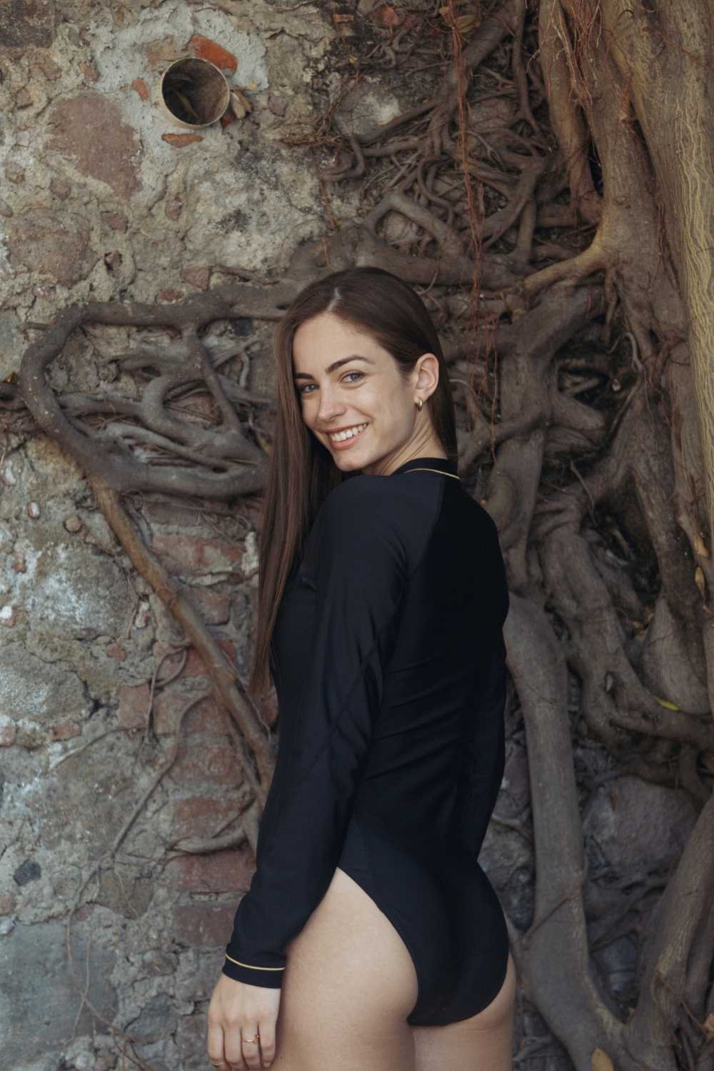 Le mannequin porte du M et mesure 176cm. Si vous êtes plus petite le maillot de bain sera donc moins échancré.