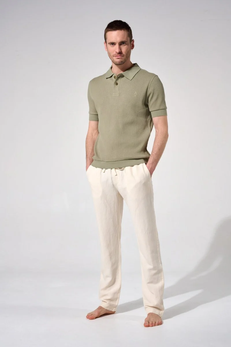 Pantalon léger homme, conçu à partir de lin naturel Européen et de tencel, pour un rendu à la fois chic et décontracté.