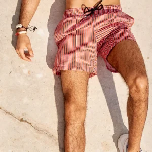 Le short de bain pour homme à rayures est celui qu’il vous faut pour cet été. Il est resserré à la taille grâce à sa ficelle et est très agréable à porter. Il contient une poche arrière zippée, un filet intérieur, et est de longueur moyenne. Conçu de manière éco-responsable et fabriqué en Italie.
