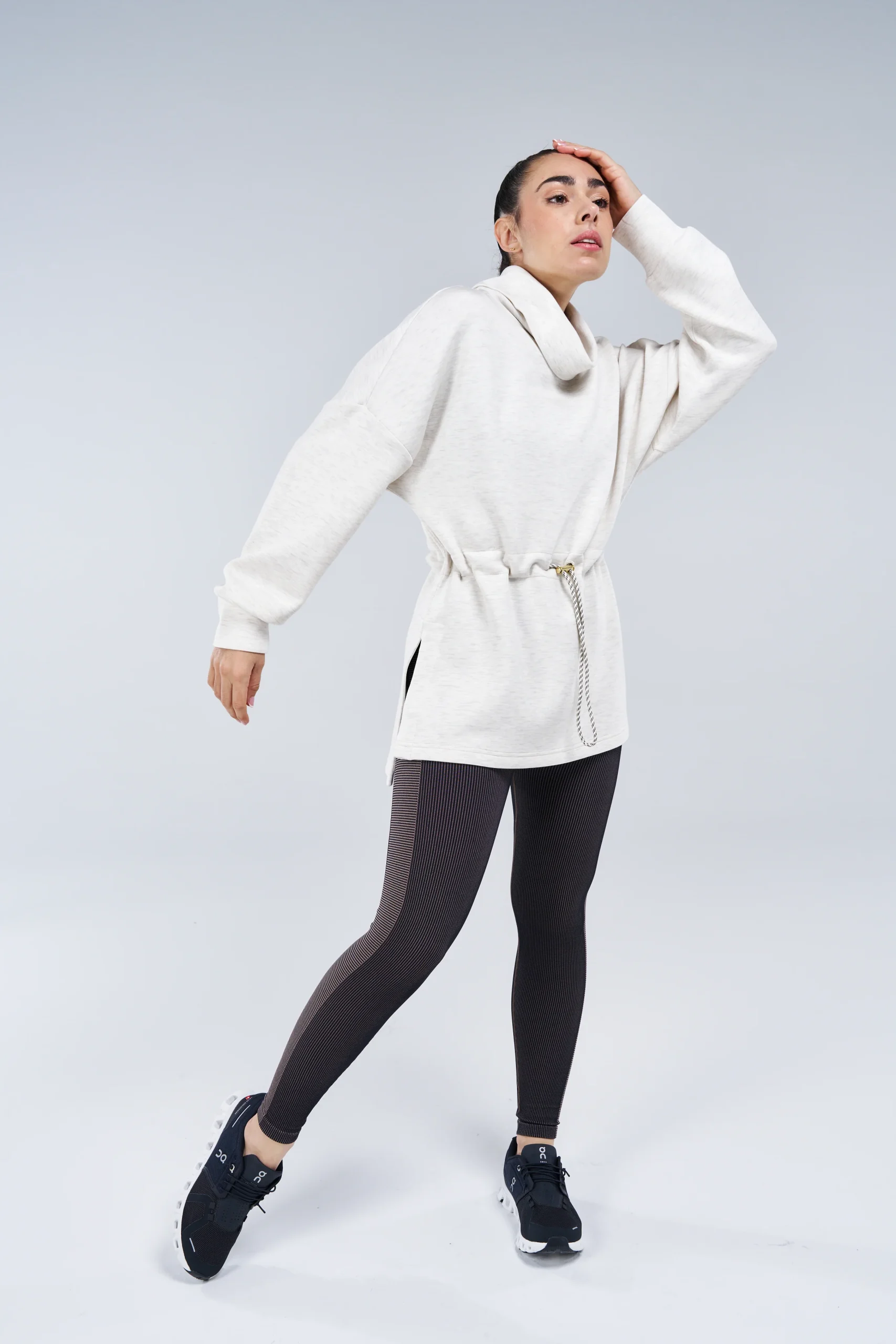 Le Freya Sweat, le sweat le plus chic et féminin que vous puissiez trouver ! On l’adore pour son col montant roulé et sa taille cintrable et ajustable qui marque élégamment votre taille.