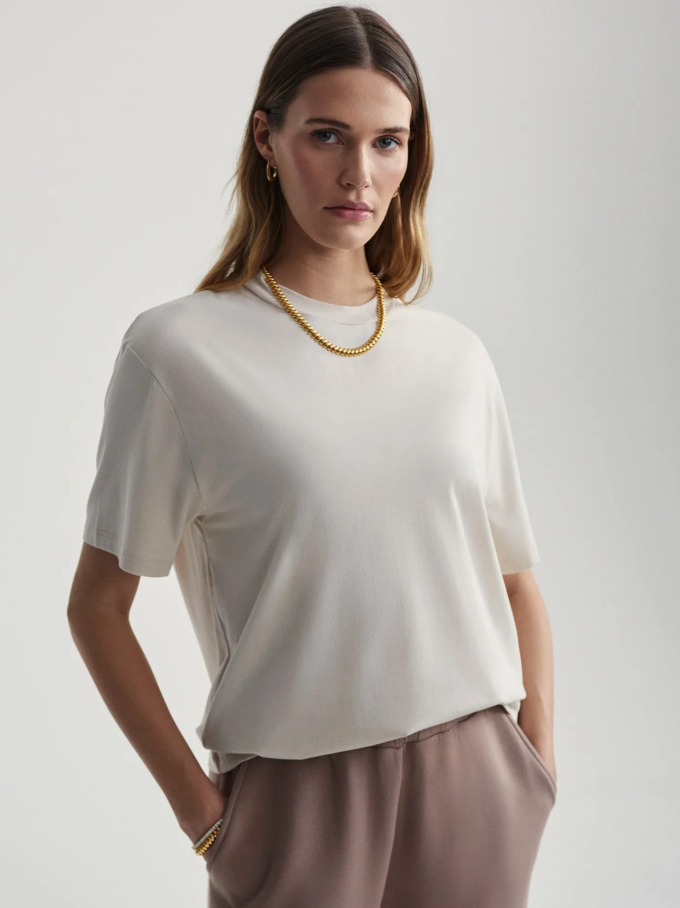 Un essentiel du quotidien revisité avec soin : le tee-shirt Leighton, une pièce intemporelle à la coupe décontractée que vous ne quitterez plus. On aime sa silhouette légèrement oversize et son col ras du cou classique, parfait pour un look casual chic en toute simplicité.