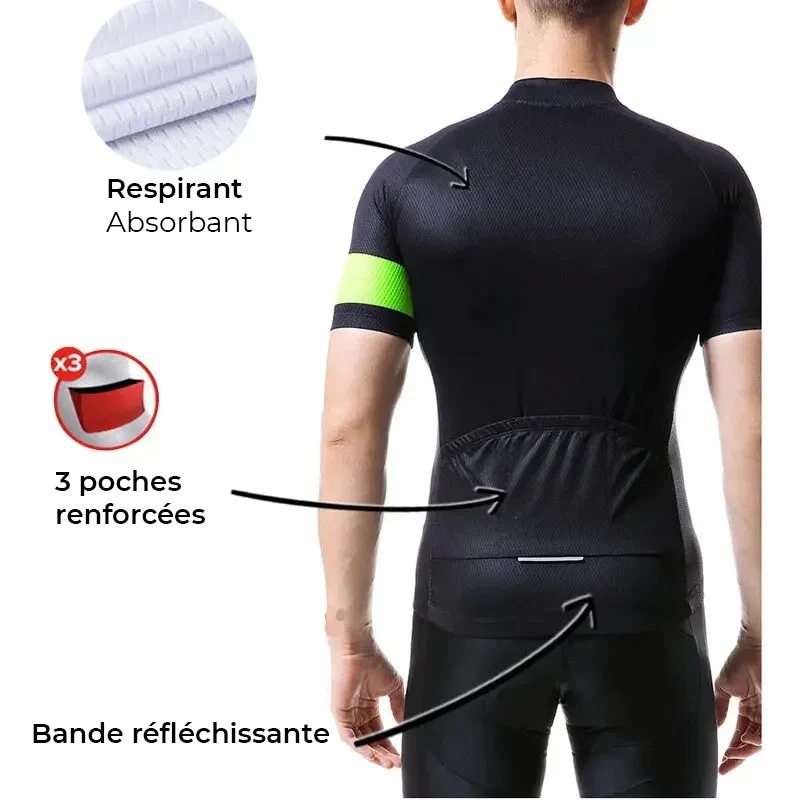 Adoptez notre Maillot de Cyclisme Vert et Noir pour profiter à 100% de vos sorties à vélo par temps ensoleillé.